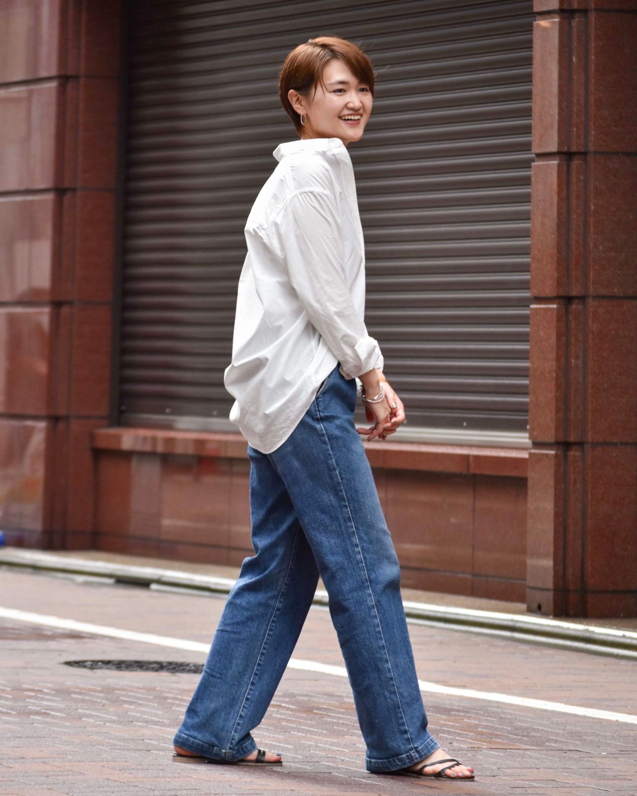 魅力① ハリ感 細い糸を使って織られている生地って聞くと、なんだ柔らかいイメージじゃないですか? でもこのタイプライター生地は、 細い糸がぎゅっと高密度で織られているのでーーー さりげないデザインポイント散りばめられた、メンズライクなカジュアルシャツ メンズっぽいイメージのカジュアルシャツ。 胸ポケットはストライプを横ボーダーに見せてポイントにしてい オーバーサイズシルエットシャツ ーーー 素材 ハリコシのある綿ポリエステルのタイプライターです。 デザイン 身幅もワイドで、着丈も長めのオーバーサイズシルエットシャ